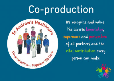 The framework can be found by all patients and staff at St Andrew’s. It includes clear plans and priorities for what good co-production practice looks like, and underpins everything we do.