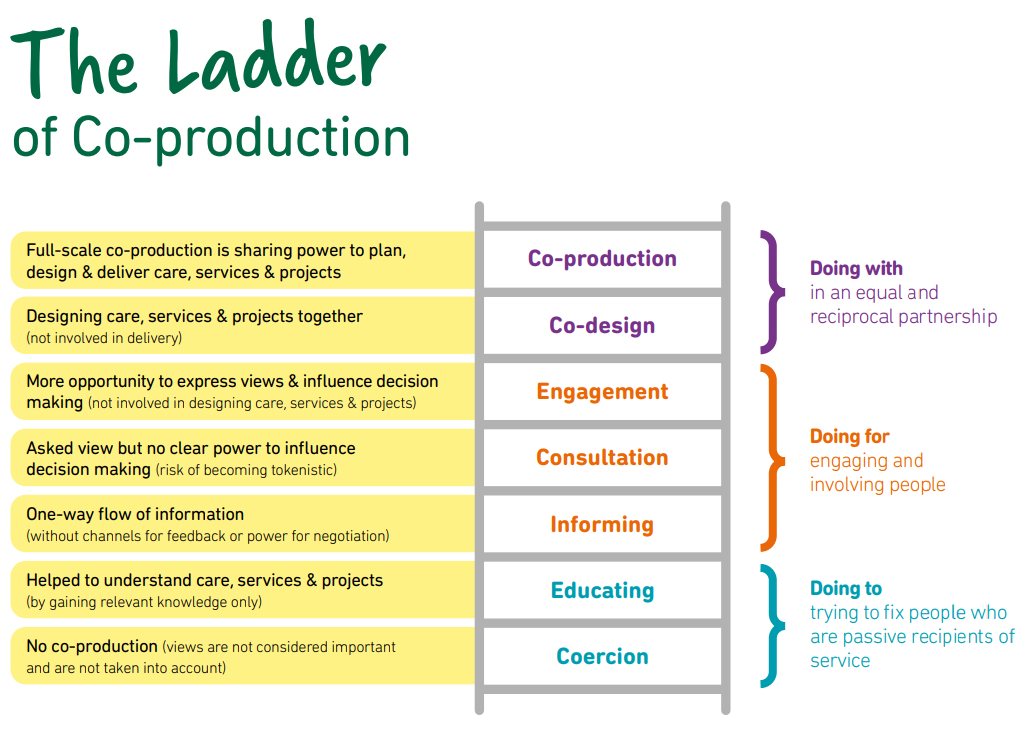 Within this document you can find the Ladder of co-production. Need an easy read version of the Ladder of co-production? You can find it here