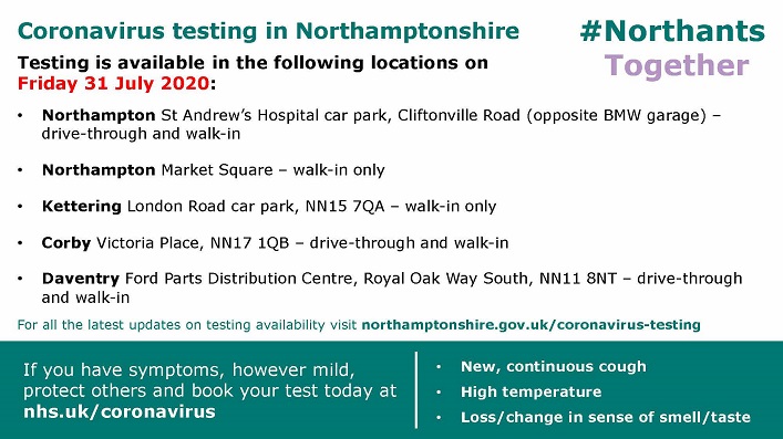 Coronavirus testing in Northamptonshire